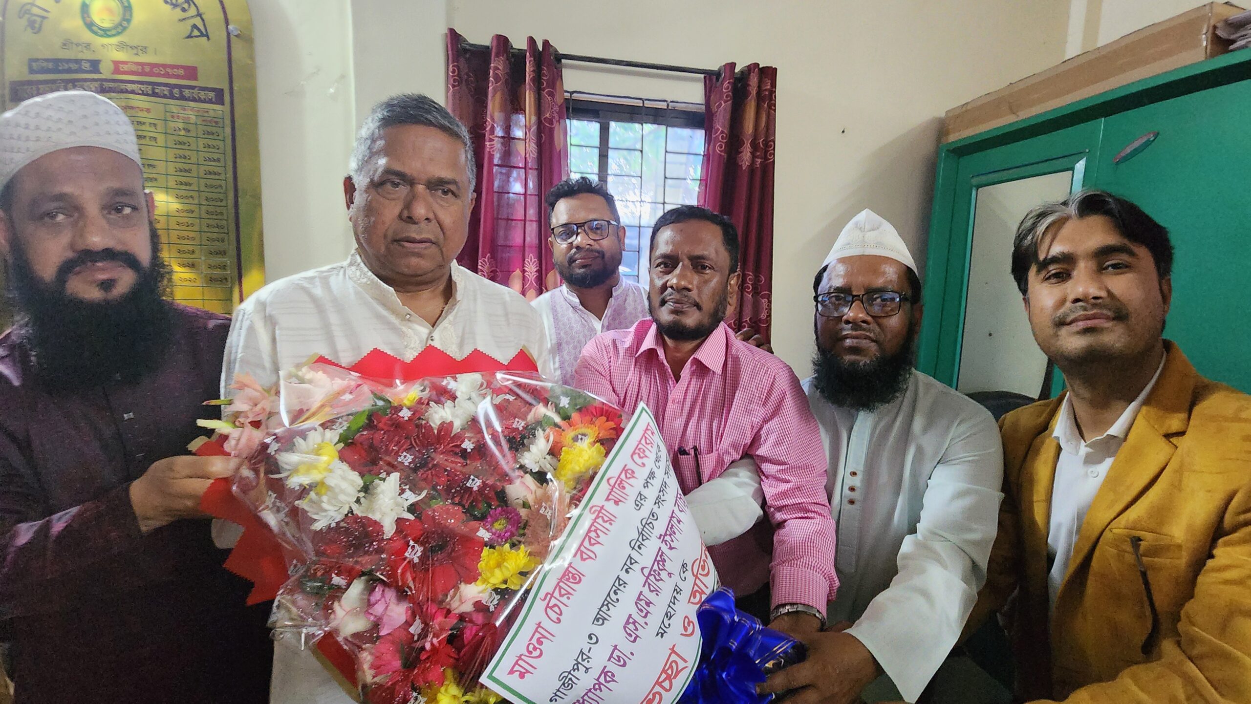 গাজীপুরের শ্রীপুরে "মাওনা চৌরাস্তা ব্যবসায়ী মালিক ফোরাম'র উদ্যোগে গাজীপুর-৩ আসনের বিএনপির মনোনীত নবনির্বাচিত সংসদ সদস্য অধ্যাপক ডাঃ এস এম রফিকুল ইসলাম বাচ্চুকে ফুলেল শুভেচ্ছা ও অভিনন্দন জানানো হয়েছে।